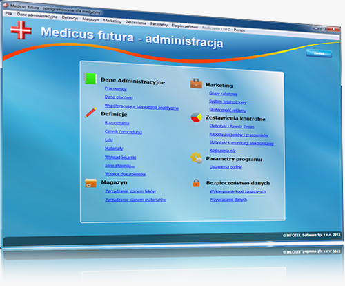 Program MEDICUS doskonale sprawdza sie w pracy w małych, jednostanowiskowych gabinetach, jak również w dużych wielostanowiskowych klinikach.